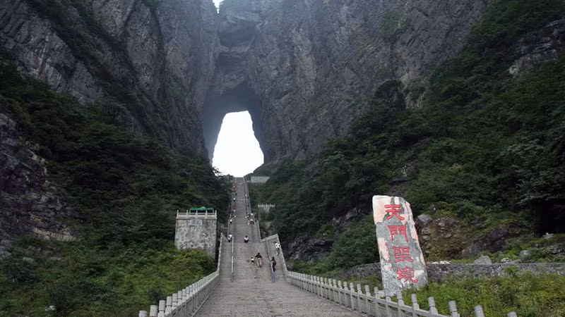 Take the elevators down to visit Tianmen Cave.